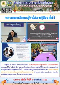 สรจ.ตาก ร่วมประชุมเชิงปฏิบัติการการถ่ายทอดแลกเปลี่ยนความรู้ที่จำเป็นในการปฎิบัติงาน ครั้งที่ 1