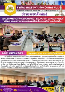 สรจ.นครพนม รับคำร้องขอเงินเยียวยา 50,000 บาท ของแรงงานไทยที่ได้รับผล กระทบจากสถานการณ์ความไม่สงบในประเทศอิสราเอล เป็นวันที่ 4