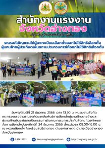 สรจ.อ่างทอง รณรงค์เชิญชวนให้ผู้ลงทะเบียนเลือกตั้งออกไปใช้สิทธิเลือกตั้ง ผู้แทนฝ่ายผู้ประกันตนในสถานประกอบการให้ออกไปใช้สิทธิเลือกตั้ง