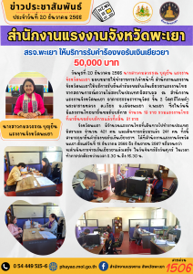 สรจ.พะเยา ให้บริการรับคำร้องขอรับเงินเยียวยา 50,000 บาท