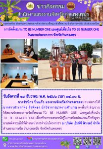 สรจ.กำแพงเพชร จัดตั้งชมรม TO BE NUMBER ONE และศูนย์เพื่อนใจ TO BE NUMBER ONE ในสถานประกอบการ จังหวัดกำแพงเพชร