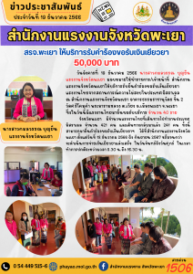 สรจ.พะเยา จัดประชุมแลกเปลี่ยนเรียนรู้การดำเนินงานอาสาสมัครแรงงานระดับตำบล จังหวัดพะเยา ประจำปีงบประมาณ พ.ศ. 2567