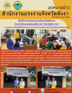 สรจ.พังงา รับคำร้องขอเงินเยี่ยวยา 50,000 บาท ของแรงงานไทยที่ได้รับผล กระทบจากสถานการณ์ความไม่สงบในประเทศอิสราเอล