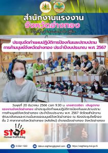 สรจ.อ่างทอง เข้าประชุมจัดทำแผนปฏิบัติการป้องกันและปราบปราม การค้ามนุษย์จังหวัดอ่างทอง ประจำปีงบประมาณ พ.ศ. 2567