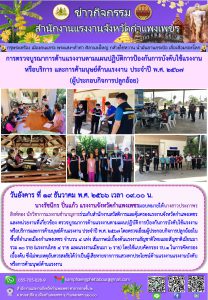 สรจ.กำแพงเพชร ตรวจบูรณาการด้านแรงงานตามแผนปฏิบัติการป้องกันการบังคับใช้แรงงานหรือบริการ และการค้ามนุษย์ด้านแรงงาน ประจำปี พ.ศ. ๒๕๖๗ (ผู้ประกอบกิจการปลูกอ้อย)