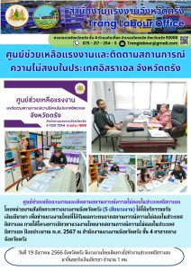 สรจ.ตรัง ให้บริการผู้มายื่นขอรับเงินเยียวยาเพื่อช่วยแรงงานไทยที่ได้รับผลกระทบจากสถานการณ์ความไม่สงบในประเทศอิสราเอล ภายใต้โครงการเยียวยาแรงงานไทยจากสถานการณ์ความไม่สงบในประเทศอิสราเอล ปีงบประมาณ พ.ศ.2567