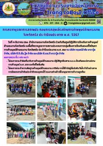 สรจ.ตรัง ออกตรวจบูรณาการสถานประกอบการกลุ่มเสี่ยงด้านการค้ามนุษย์ด้านแรงงานจังหวัดตรัง ประจำปีงบประมาณ พ.ศ.2567 New
