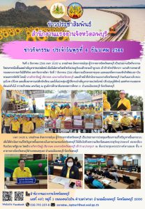 สรจ.ลพบุรี จัดพิธีเนื่องในวันคล้ายวันพระบรมราชสมภพพระบาทสมเด็จพระบรมชนกาธิเบศร มหาภูมิพลอดุลยเดชมหาราช บรมนาถบพิตร วันชาติ และวันพ่อแห่งชาติ