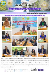 สรจ.พังงา ประชุมหัวหน้าส่วนราชการในสังกัดกระทรวงแรงงานจังหวัดพังงา ครั้งที่ 8/2568