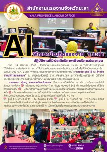 พัฒนาบัณฑิตแรงงานจังหวัดยะลา ปฏิบัติงานที่มีประสิทธิภาพเพื่อบริการประชาชน
