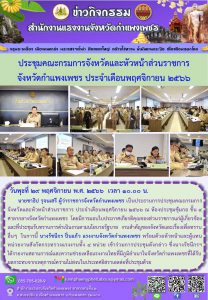 สรจ.กำแพงเพชร เข้าร่วมประชุมคณะกรมการจังหวัดและหัวหน้าส่วนราชการ จังหวัดกำแพงเพชร ประจำเดือนพฤศจิกายน 2566
