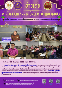 แรงงานจังหวัดกำแพงเพชร ร่วมประชุมคณะกรรมการพัฒนาซอฟต์พาวเวอร์ จังหวัดกำแพงเพชร ครั้งที่ 2/2568