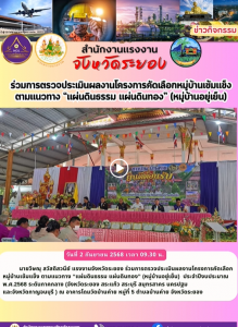 แรงงานจังหวัดระยอง ร่วมการตรวจประเมินผลงานโครงการคัดเลือกหมู่บ้านเข้มแข็ง ตามแนวทาง “แผ่นดินธรรม แผ่นดินทอง” (หมู่บ้านอยู่เย็น) ประจำปีงบประมาณ พ.ศ.2568 ระดับภาคกลาง (จังหวัดระยอง สระแก้ว สระบุรี สมุทรสาคร นครปฐม และจังหวัดกาญจนบุรี )