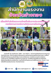 สรจ.อ่างทอง เยี่ยมให้กำลังใจแรงงานไทยที่กลับจากประเทศอิสราเอล กรณีสถานการณ์ความไม่สงบภายในประเทศ