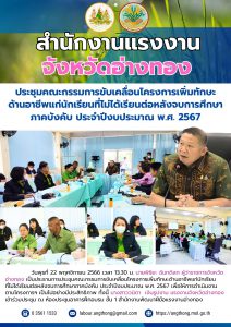 สรจ.อ่างทอง เข้าร่วมประชุมคณะกรรมการขับเคลื่อนโครงการเพิ่มทักษะ ด้านอาชีพแก่นักเรียนที่ไม่ได้เรียนต่อหลังจบการศึกษา ภาคบังคับ ประจำปีงบประมาณ พ.ศ. 2567