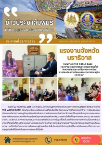 สรจ.นราธิวาส ให้สัมภาษณ์ THE WORLD BANK หัวข้อ“แนวโน้มการพัฒนาเศรษฐกิจในพื้นที่จังหวัดชายแดนภาคใต้ของประเทศไทย: การประเมินความต้องการและโอกาสเศรษฐกิจและสังคม”