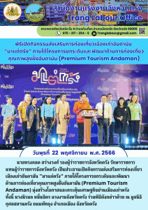 สรจ.ตรัง ร่วมพิธีเปิดกิจกรรมส่งเสริมการท่องเที่ยวเมืองเก่าอันดามัน “มาแต่ตรัง“ ภายใต้โครงการยกระดับและพัฒนาด้านการท่องเที่ยวคุณภาพสูงฝั่งอันดามัน (Premium Tourism Andaman)