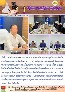 สรจ.นครศรีธรรมราช ได้ดำเนินการจัดประชุมขับเคลื่อนงานอาสาสมัครแรงงานจังหวัดนครศรีธรรมราช ครั้งที่ 6/2566