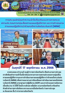 สรจ.ตรัง ร่วมการประชุมซักซ้อมทำความเข้าใจเกี่ยวกับแนวทางการตรวจสถานประกอบการกลุ่มเสี่ยงตามแผนปฏิบัติการฯและการดำเนินงานตามแผนปฏิบัติการว่าด้วยกลไกการส่งต่อระดับชาติ (NRM)