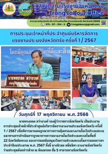 สรจ.ตรัง ร่วมการประชุมเจ้าหน้าที่ประจำศูนย์บริหารจัดการแรงงานประมงจังหวัดตรัง ครั้งที่ 1/2567