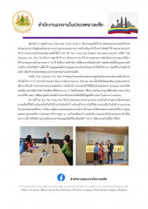 สนร.มาเลเซีย มอบประกาศเกียรติคุณที่ปรึกษากิตติมศักดิ์ดัานแรงงานประจำสำนักงานแรงงานในประเทศ