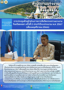 สรจ.สงขลา ประชุมหัวหน้าส่วนราชการสังกัดกระทรวงแรงงานจังหวัดสงขลา ครั้งที่ 2 ประจำปีงบประมาณ พ.ศ. 2567 (เดือนพฤศจิกายน 2566)