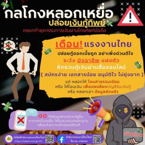 สำนักงานแรงงานไทย ไทเป ประชาสัมพันธ์ ⚠️ #โปรดระวัง กู้ยืมเงินออนไลน์ ❌ ไม่เชื่อ ❌ ไม่บอก ❌ ไม่โดนหลอก 💸 มิจฉาชีพยุคนี้ มาทางสื่อออนไลน์ ไม่ว่ามาแบบไหน สุดท้ายก็เสียเงิน ข้อมูลโดนล้วง และกลายเป็นหนี้ไม่รู้ตัว !!
