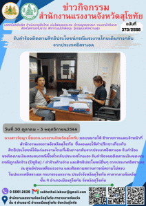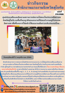 สรจ.สุโขทัย รับคำร้องติดตามสิทธิประโยชน์กรณีแรงงานไทยเดินทางกลับจากประเทศอิสราเอล