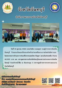 รองผู้ว่าราชการจังหวัดจันทบุรี รับมอบเงินและสิ่งของสำหรับช่วยเหลือแรงงานไทยในอิสราเอล