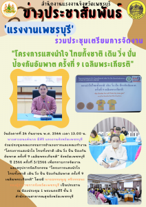 สรจ.เพชรบุรี ร่วมประชุมเตรียมการจัดงาน “โครงการแสงนำใจ ไทยทั้งชาติ เดิน วิ่ง ปั่น ป้องกันอัมพาต ครั้งที่ 9 เฉลิมพระเกียรติ”