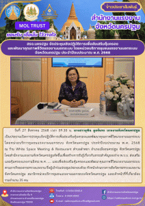 นางศุภลักษณ์ ศรุติรัตน์วรกุล แรงงานจังหวัดนครสวรรค์ มอบหมาย นางสาวนวรัตน์ ไชยรัตนฉัตร นักวิชาการแรงงานชำนาญการพิเศษ ร่วมต้อนรับอธิบดีกรมสวัสดิการและคุ้มครองแรงงาน ลงพื้นที่เยี่ยมชมสถานประกอบการ และการจัดสวัสดิการพันธุ์ดี ตามวิถีเศรษฐกิจพอเพียง ในพื้นที่จังหวัดนครสวรรค์ ณ บริษัท เกษตรไทย อินเตอร์เนชั่นแนล ชูการ์ คอร์เปอเรชั่น จำกัด (มหาชน) จังหวัดนครสวรรค์