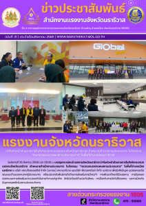 แรงงานจังหวัดนราธิวาส นำทีมหัวหน้าส่วนราชการในสังกัดกระทรวงแรงงานจังหวัดนราธิวาส เข้าพบนายจ้าง/สถานประกอบการ ในกิจกรรม “กระทรวงแรงงานพบสถานประกอบการ” ในพื้นที่อำเภอเมืองนราธิวาส