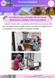 เจ้าหน้าที่สำนักงานแรงงานจังหวัดพิจิตร ให้คำปรึกษาเกี่ยวกับ สิทธิประโยชน์แรงงานไทยที่เดินทางไปทำงานประเทศไต้หวัน