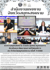 แรงงานสมุทรสงคราม ร่วมประชุมคณะอนุกรรมการ ส่งเสริมและพัฒนาคุณภาพชีวิตคนพิการ ประจำจังหวัดสมุทรสงคราม ครั้งที่ 7/2568