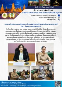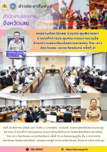 แรงงานจังหวัดเลย ร่วมประชุมพิจารณา ร่างบันทึกการประชุมคณะกรรมการร่วมมือ รักษาความสงบเรียบร้อยตามชายแดน ไทย–ลาว จังหวัดเลย–แขวงเวียงจันทน์ ครั้งที่ 21