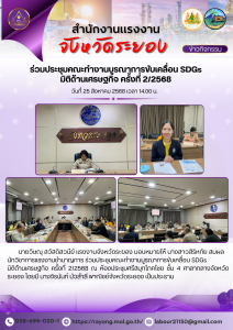สรจ.ระยอง ร่วมประชุมคณะทำงานบูรณาการขับเคลื่อน SDGs มิติด้านเศรษฐกิจ ครั้งที่ 2/2568