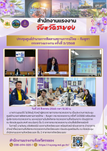 สรจ.ระยอง ประชุมศูนย์อำนวยการติดตามสถานการณ์ไทย – กัมพูชา กระทรวงแรงงาน ครั้งที่ 3/2568