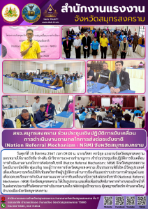 สรจ.สมุทรสงคราม ร่วมประชุมเชิงปฏิบัติการขับเคลื่อนการดำเนินงานตามกลไกการส่งต่อระดับชาติ (Nation Referral Mechanism : NRM) จังหวัดสมุทรสงคราม