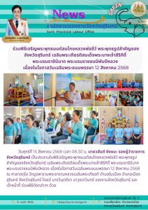 แรงงานจังหวัดสุรินทร์ ร่วมพิธีเจริญพระพุทธมนต์สมโภชหลวงพ่อชีว์ พระพุทธรูปสำคัญของจังหวัดสุรินทร์ เฉลิมพระเกียรติสมเด็จพระนางเจ้าสิริกิติ์ พระบรมราชินีนาถ พระบรมราชชนนีพันปีหลวง เนื่องในโอกาสวันเฉลิมพระชนมพรรษา 12 สิงหาคม 2568