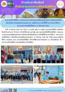 แรงงานจังหวัดพิจิตร ร่วมลงนามถวายพระพรและเยี่ยมชมนิทรรศการเฉลิมพระเกียรติ เนื่องในโอกาสวันเฉลิมพระชนมพรรษา สมด็จพระนางเจ้าสิริกิติ์ พระบรมราชินีนาถ พระบรมราชชนนีพันปีหลวง 12 สิงหาคม 2568