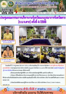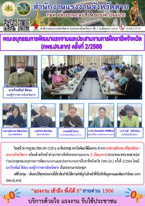 สรจ.ตาก ร่วมประชุมคณะอนุกรรมการพัฒนาแรงงานและประสานงานการฝึกอาชีพจังหวัด (กพร.ปจ.ตาก) ครั้งที่ 2/2566