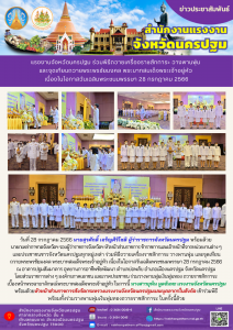 สรจ.นครปฐม ร่วมพิธีทำบุญตักบาตรถวายพระราชกุศลแด่ พระบาทสมเด็จพระเจ้าอยู่หัว เนื่องในโอกาสวันเฉลิมพระชนมพรรษา 28 กรกฎาคม 2566