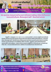 สรจ.อ่างทอง เข้าร่วมประชุมคณะกรรมการอำนวยการโครงการพัฒนาจังหวัดต้นแบบ “ครอบครัวมั่นคง สังคมสุขภาพดี”