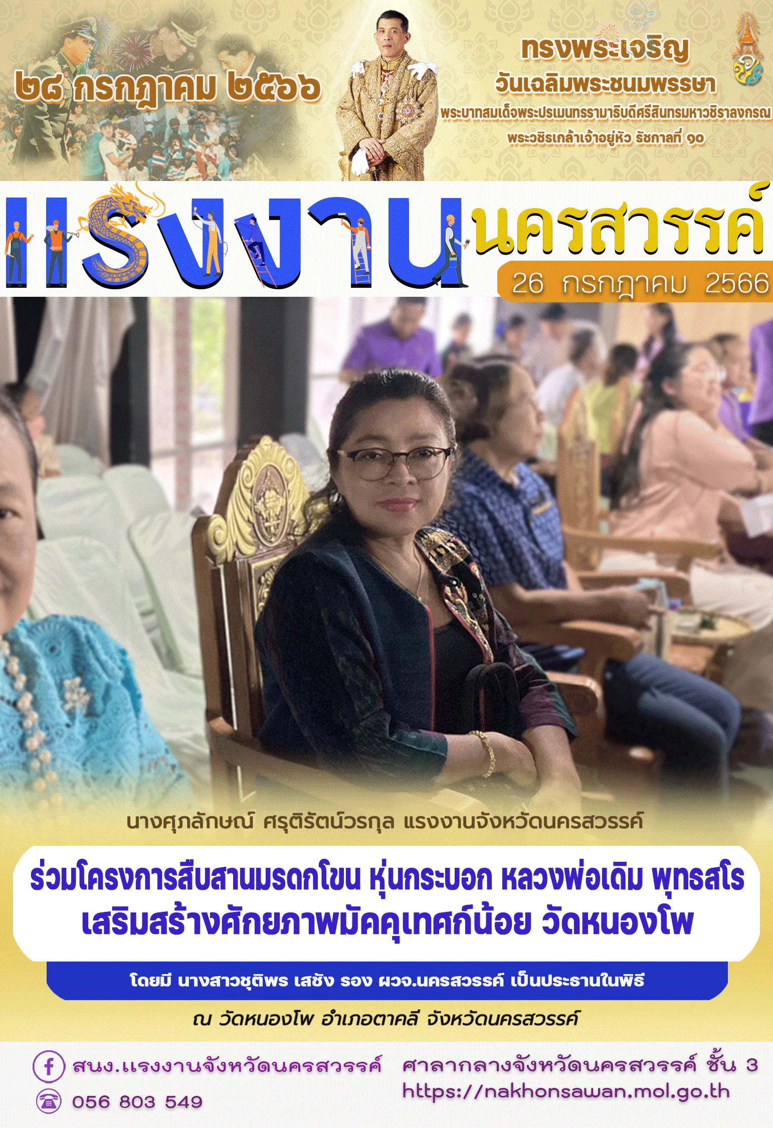 สรจ.นครสวรรค์ ร่วมโครงการสืบสานมรดกโขน หุ่นกระบอก หลวงพ่อเดิม พุทธสโร เสริมสร้างศักยภาพมัคคุเทศก์น้อย วัดหนองโพ