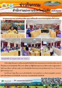 สรจ.สุโขทัย ประชุมเพื่อทบทวนแผนปฏิบัติราชการระยะ 5 ปี (พ.ศ. 2566 – 2570) ของกระทรวงแรงงาน