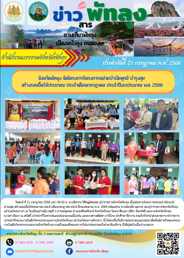 จังหวัดพัทลุง จัดโครงการโครงการหน่วยบำบัดทุกข์ บำรุงสุข สร้างรอยยิ้มให้ประชาชน ประจำเดือนกรกฎาคม ประจำปีงบประมาณ พ.ศ. 2566