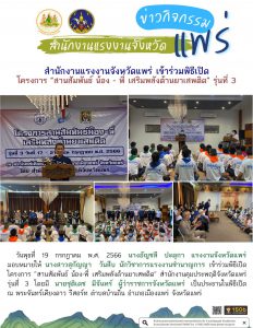 สำนักงานแรงงานจังหวัดแพร่ เข้าร่วมพิธีเปิดโครงการ “สานสัมพันธ์ น้อง – พี่ เสริมพลังต้านยาเสพติด” รุ่นที่ 3
