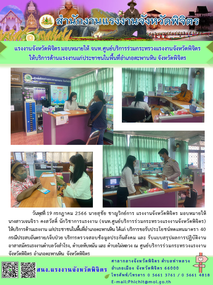 สรจ.พิจิตร ให้บริการด้านแรงงานแก่ประชาชนในพื้นที่อำเภอตะพานหิน จังหวัดพิจิตร