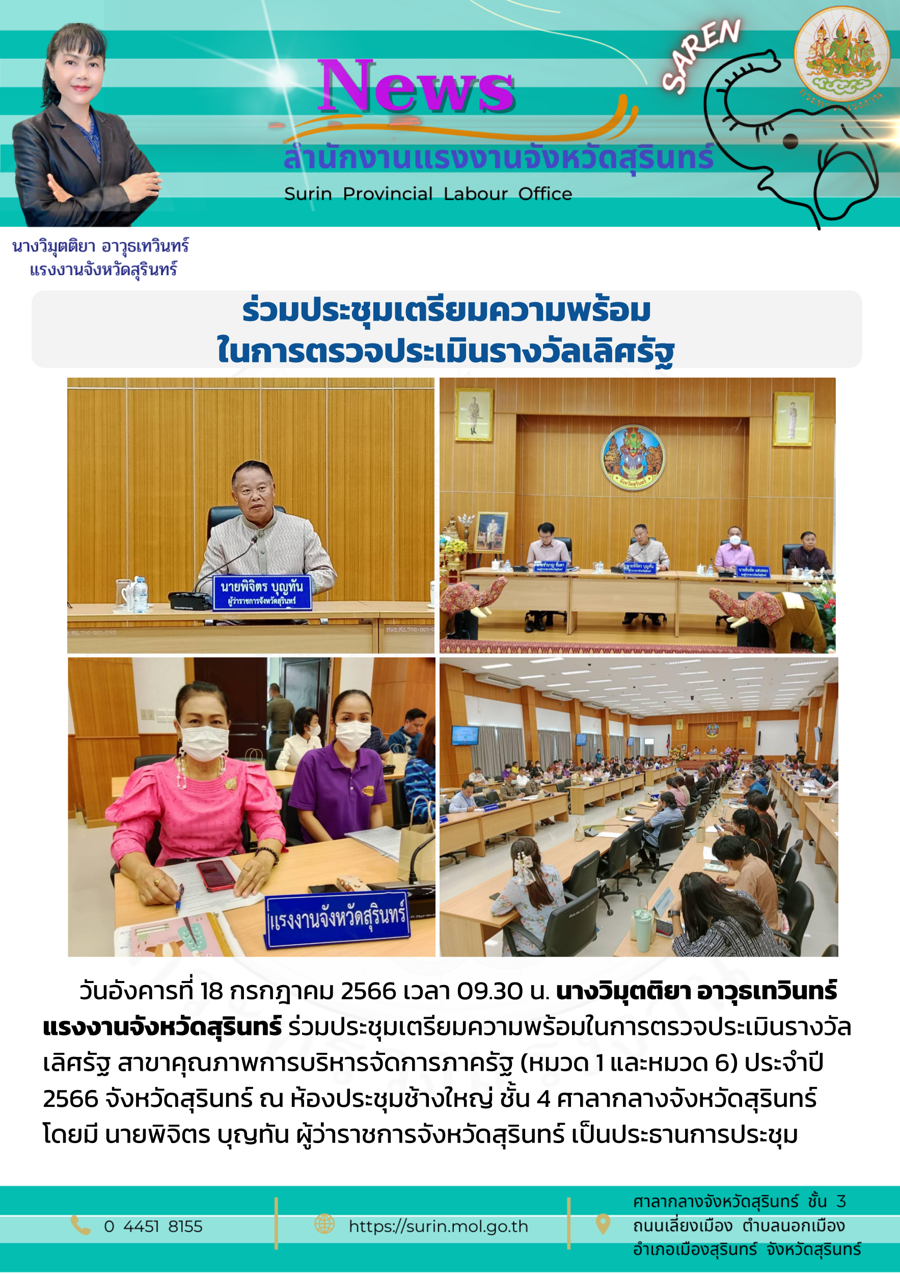 สรจ.สุรินทร์ ร่วมประชุมเตรียมความพร้อมในการตรวจประเมินรางวัลเลิศรัฐ