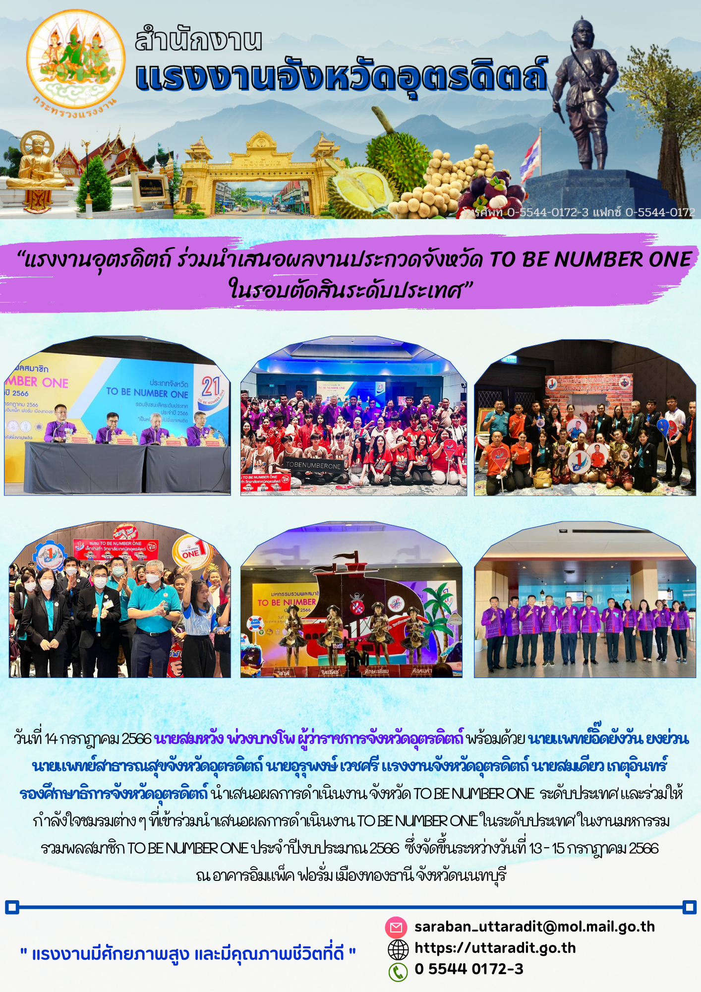 สรจ.อุตรดิตถ์ ร่วมนำเสนอผลงานประกวดจังหวัด TO BE NUMBER ONE ในรอบตัดสินระดับประเทศ